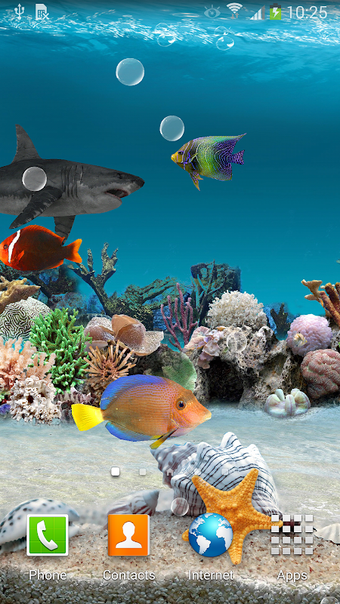 Artık Android cihazınızda kolayca güzel bir akvaryum duvar kağıdı ayarlayabilirsiniz. Animasyonlu 3D canlı duvar kağıdımız, kendinizi sualtı dünyasına dalmış gibi hissetmenizi sağlayacaktır. Uygulama, gerçekçi ve güzel arka plan efektlerine sahiptir.